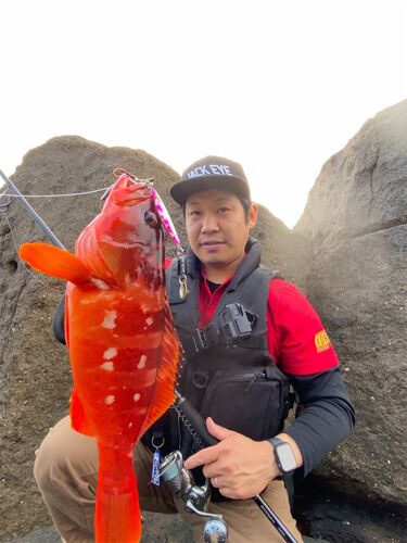 昨日は浜へ行ったけど、開始早々に不注意で竿を下に落としてしまい、ガイドリングを損傷させて終了したつっちゃんです。 朝マズメにこの凡ミスは痛い。 タックルは大事にしないと・・。 さて、この日は地磯へオオモンハタ調査。 4時30分頃磯に入ります。 磯…