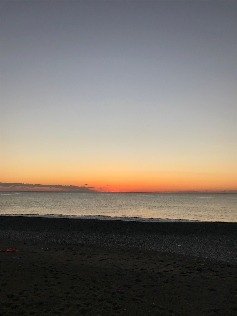 波は穏やかで、鮮やかな赤色の朝焼けが特に綺麗でした。