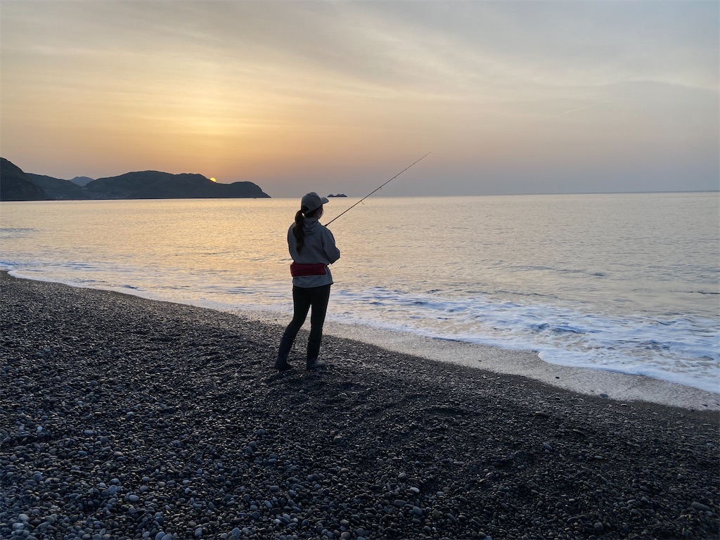 火曜日は熊野の釣りガールYouTuberを目指している?「れいちゃん」になんとか七里御浜で魚を釣らせたいと考え、最近回り始めた「ワカナ(ブリの幼魚)」を狙って浜インしました。